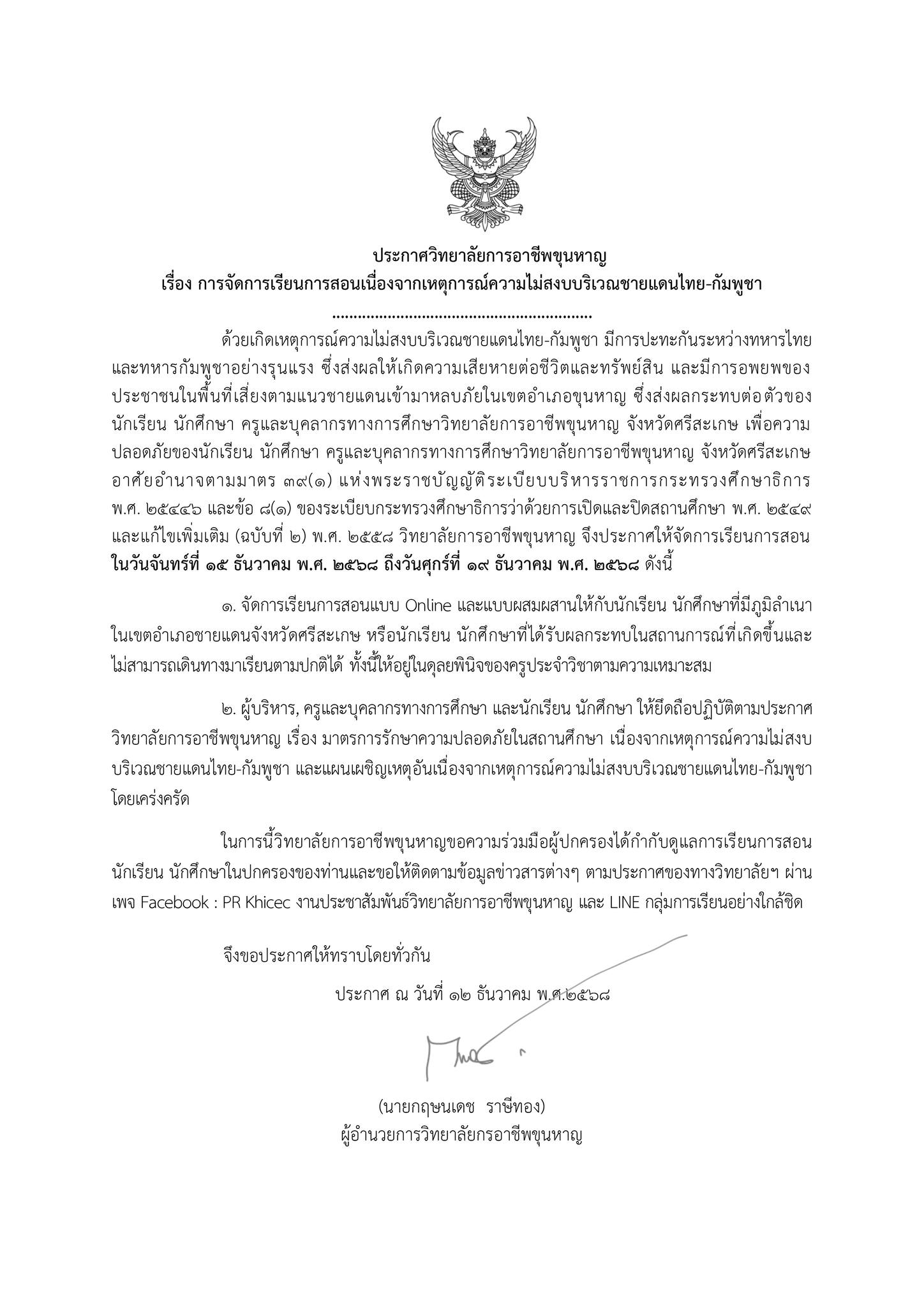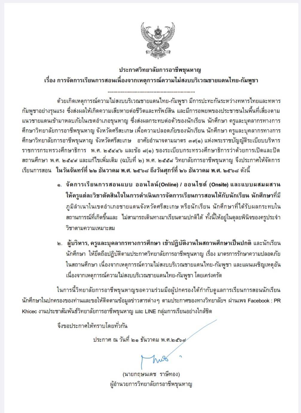 ผู้อำนวยการวิทยาลัยการอาชีพขุนหาญ