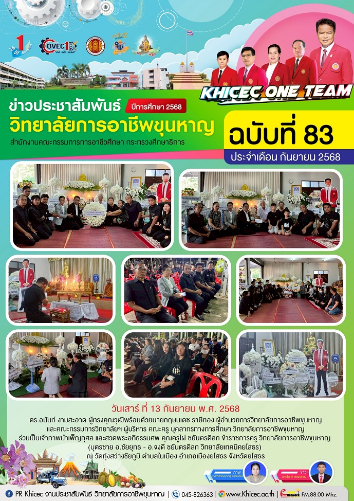 วิทยาลัยการอาชีพขุนหาญร่วมเป็นเจ้าภาพบำเพ้ญกุศลและสวดพระอภิธรรมศพ คุณครูไผ่ ชยันตรดิลก ข้าราชการครู