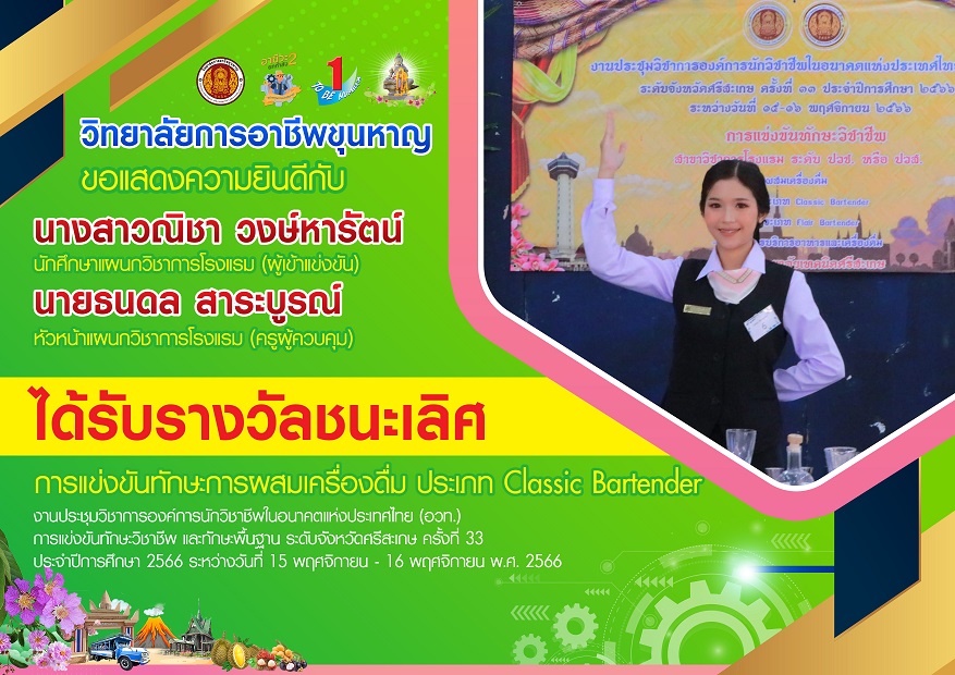 2566-11-17__ขอแสดงความยินดีกับรางวัลชนะเลิศการแข่งขันทักษะการผสมเครื่องดื่ม ประเภท Classic Bartender